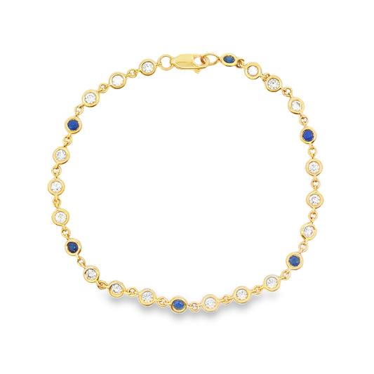 18K Yellow Gold - Diamond & Sapphire Bracelet - J38851