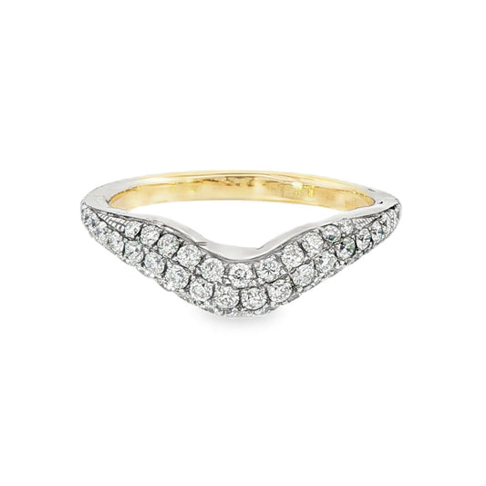 14K Yellow Gold & 18K White Gold - Pavé Diamond Curved Band - J38913