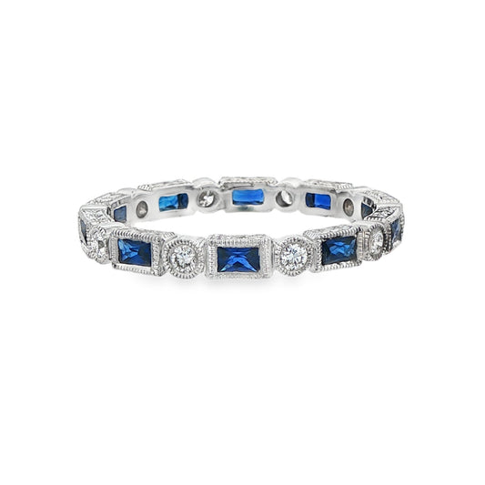 18K White Gold - Sapphire & Diamond Eternity Band - J37559