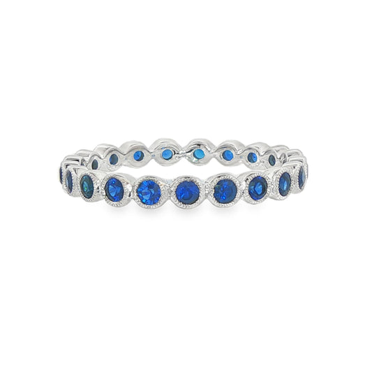 14K White Gold - Sapphire & Diamond Eternity Band - J37387