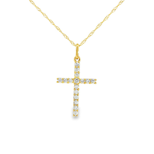 18K Yellow Gold - Diamond Cross Necklace - J36131