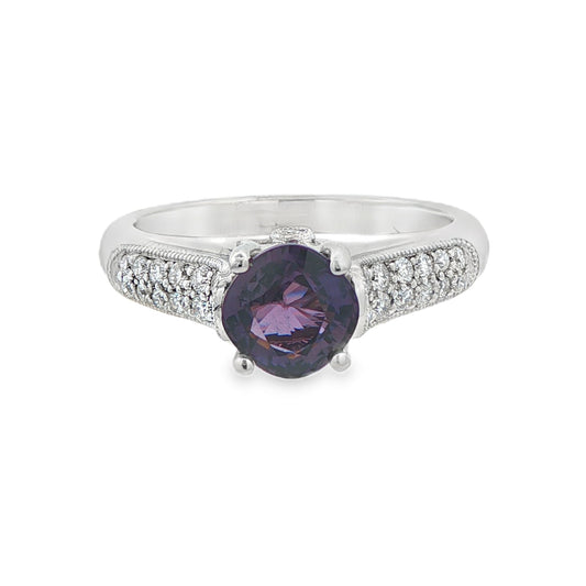 18K White Gold - Pave Diamond & Purple Sapphire Ring - 11443