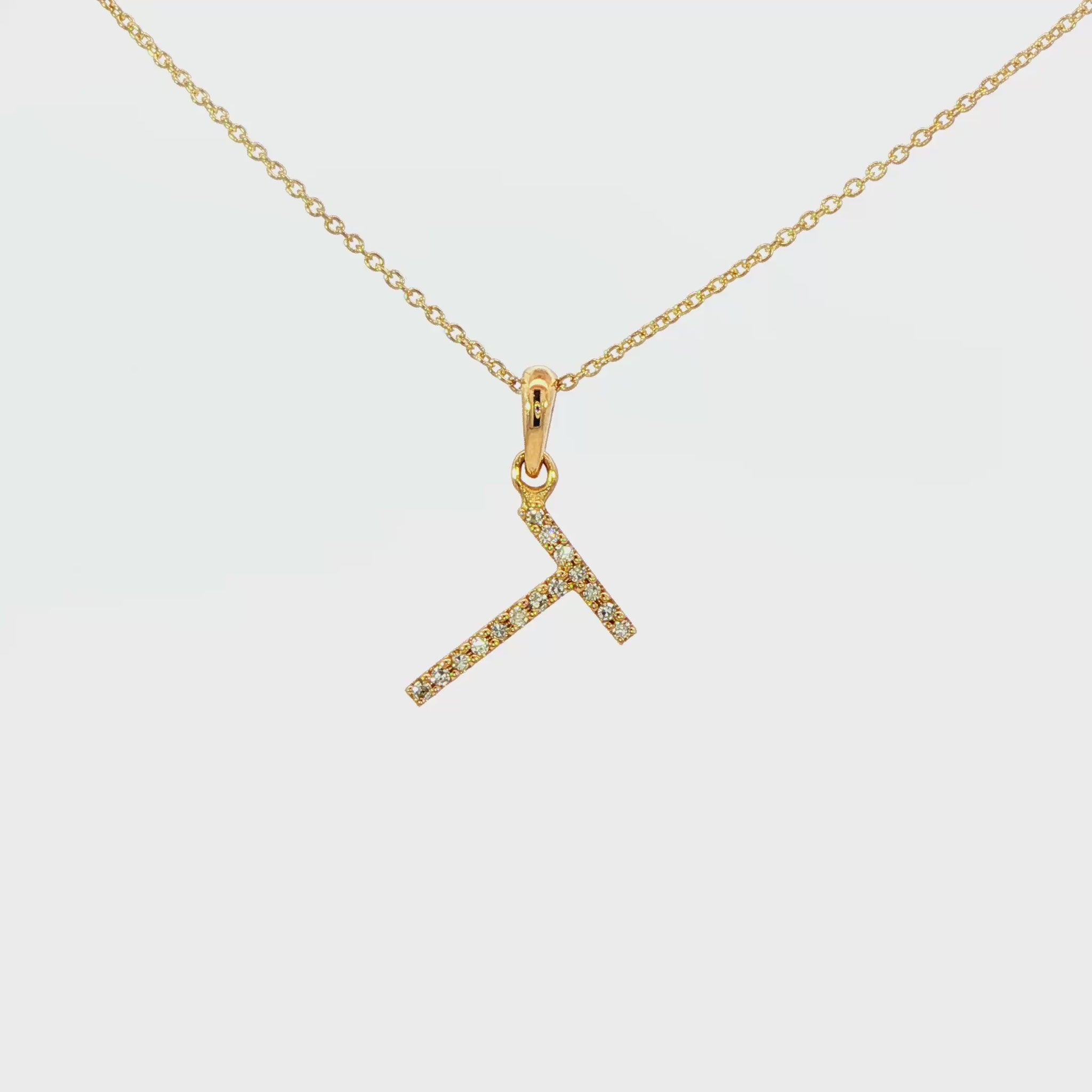 Adorn your neckline with this charming "T" initial pendant necklace. Crafted in radiant yellow gold, this delicate piece features a captivating array of round cut diamonds set in a sparkling, pave setting. A delightful token of affection, this timeless necklace adds a personal touch to any ensemble.
