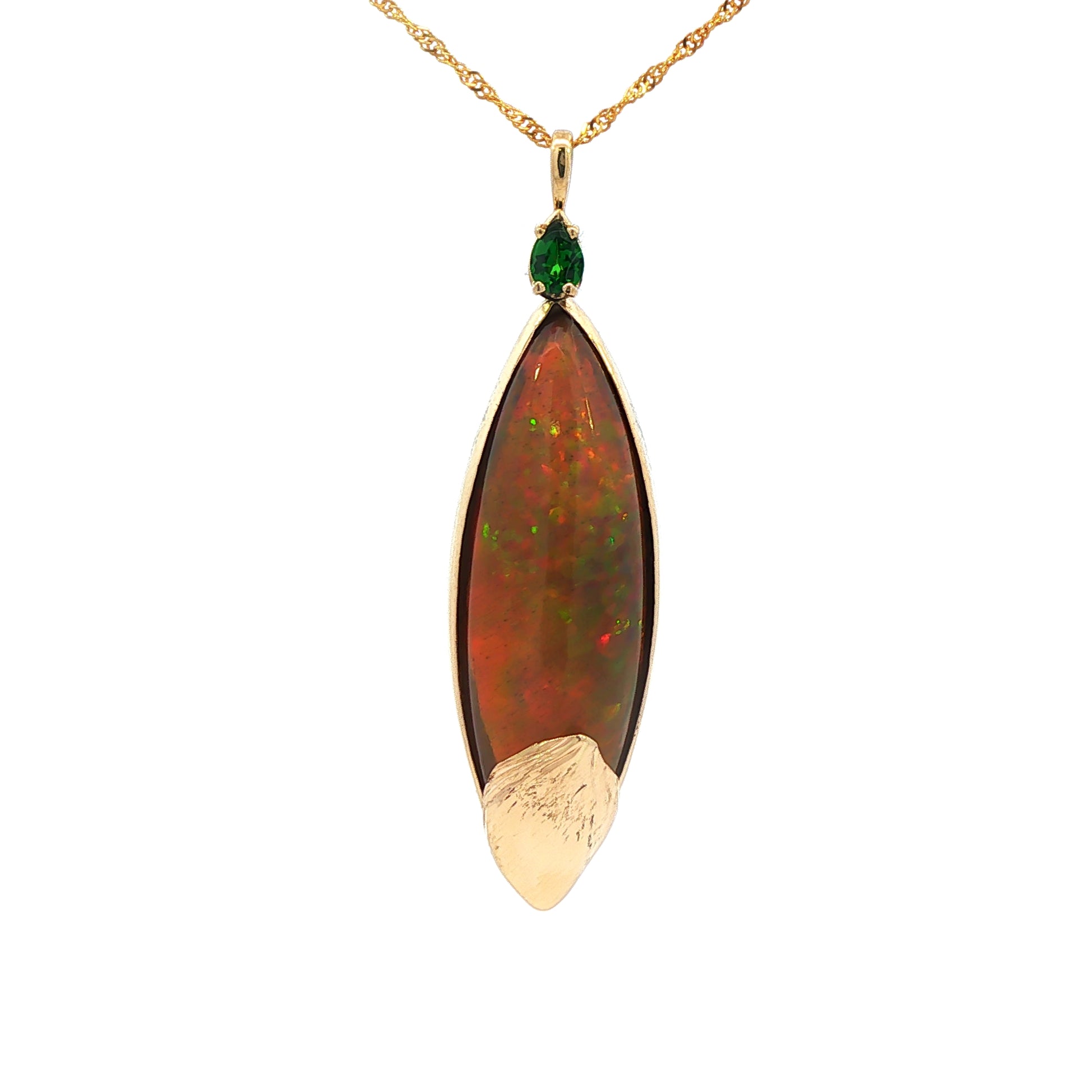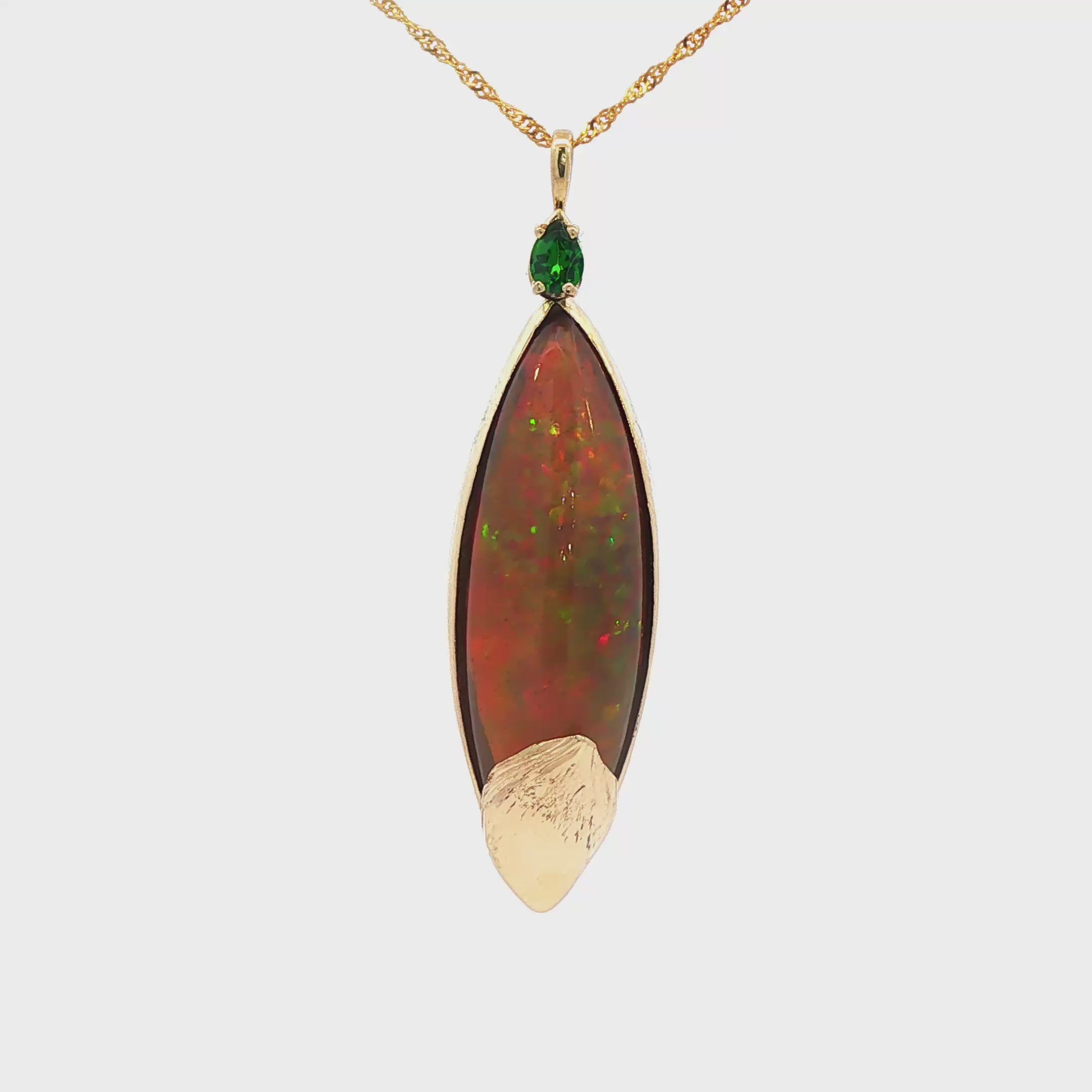 14K Yellow gold tsavorite opal pendant, 32.80 carat weight